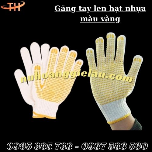 Găng tay len hạt nhựa vàng