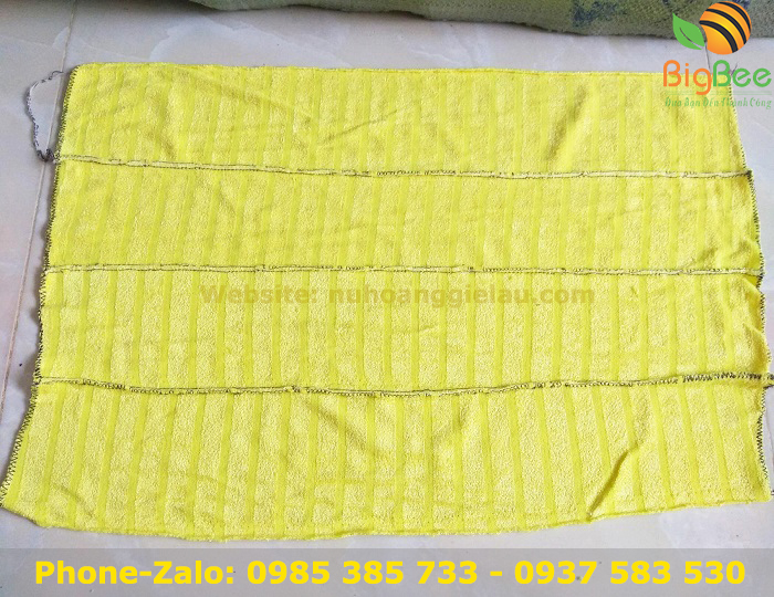- Kích thước: 40 x 60cm, được nối dọc bởi 4 hoặc 5 miếng vải, chỉ được cắt kỹ xung quanh viền 2 đầu khăn.